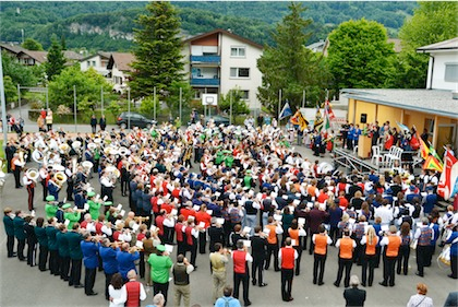 Dort spielten die 16 Musikgesellschaften – Unterseen und Interlaken zusammen – ihre Vortragsstücke.