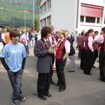 Oder auch an der Blasmusik Hasliberg, die mit einem Leiterwagen-Kind ein hübsches Fotosujet mitführte.