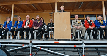 Die Veteranen-Ehrung auf dem Podium vor der Böniger Turnhalle.